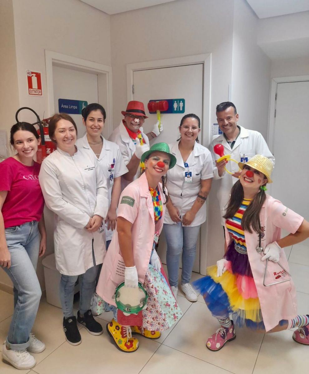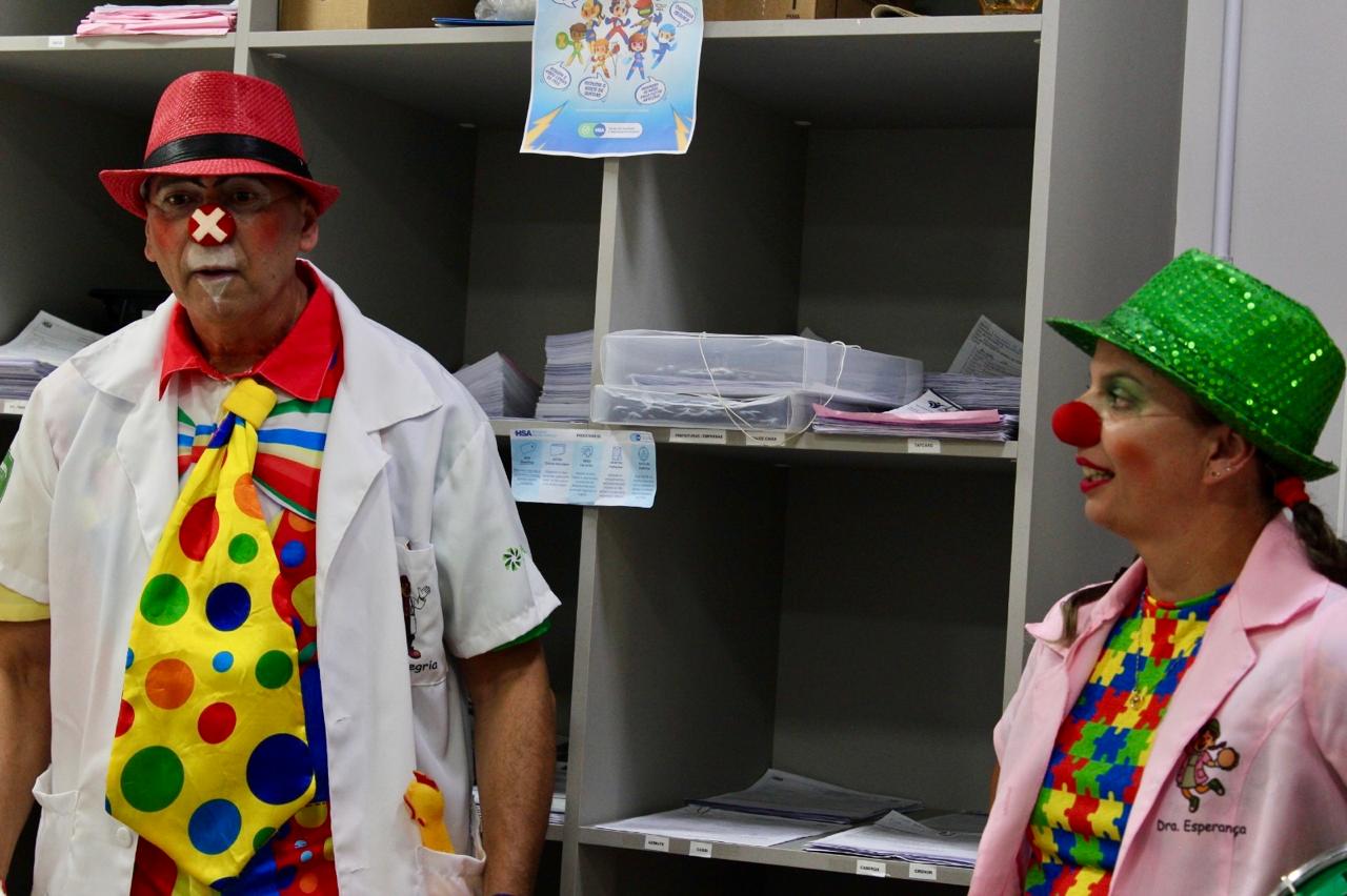 Os Doutores Palhaços percorreram os corredores e setores do HSA, levando alegria, sorrisos e leveza a colaboradores e pacientes. O lema do grupo é: “Rir, para os Doutores Palhaços, é sempre o melhor remédio”, trazendo a importância do bom humor como parte do cuidado e da humanização no ambiente hospitalar.