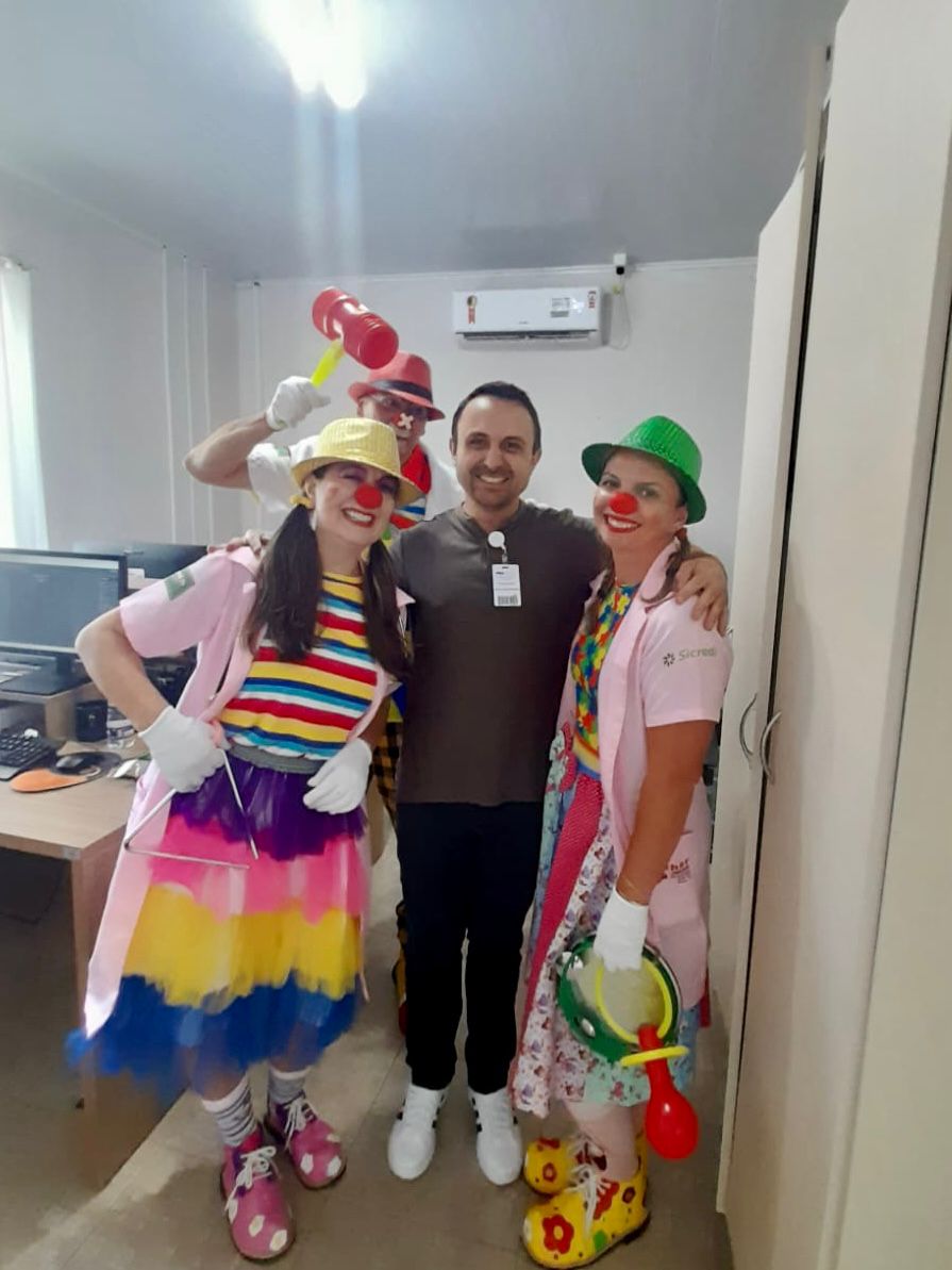 Agradecemos ao grupo SOS Bom Humor, representado pelo Dr. Alegria, Dra. Esperança e Dra. Sorriso, pela visita especial e por encher nosso dia de felicidade e boas energias.