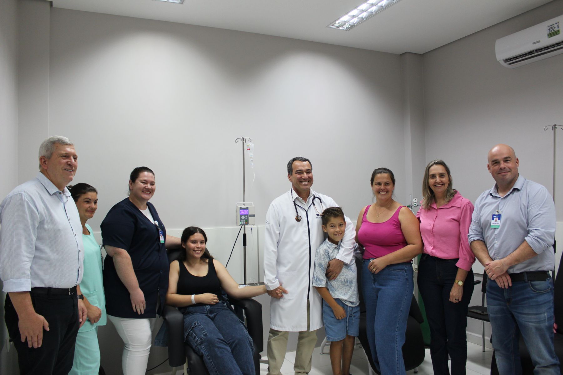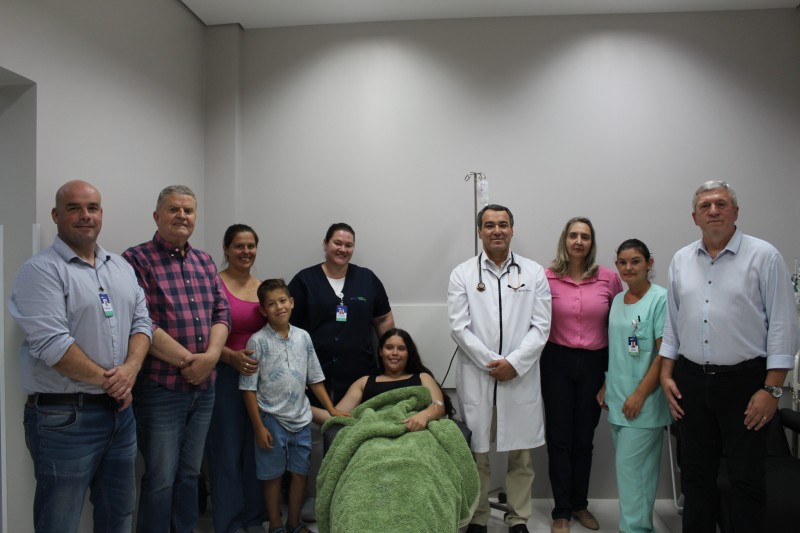Anna, natural de Sananduva, é a primeira paciente a receber as infusões pelo SUS em nossa região e em nossa instituição, deslocando-se até o hospital para a realização do tratamento. A paciente expressou sua alegria e gratidão por ser a primeira contemplada, ressaltando o quanto aguardava por esse momento, na esperança de conquistar mais qualidade de vida, com menos dor e mais bem-estar.