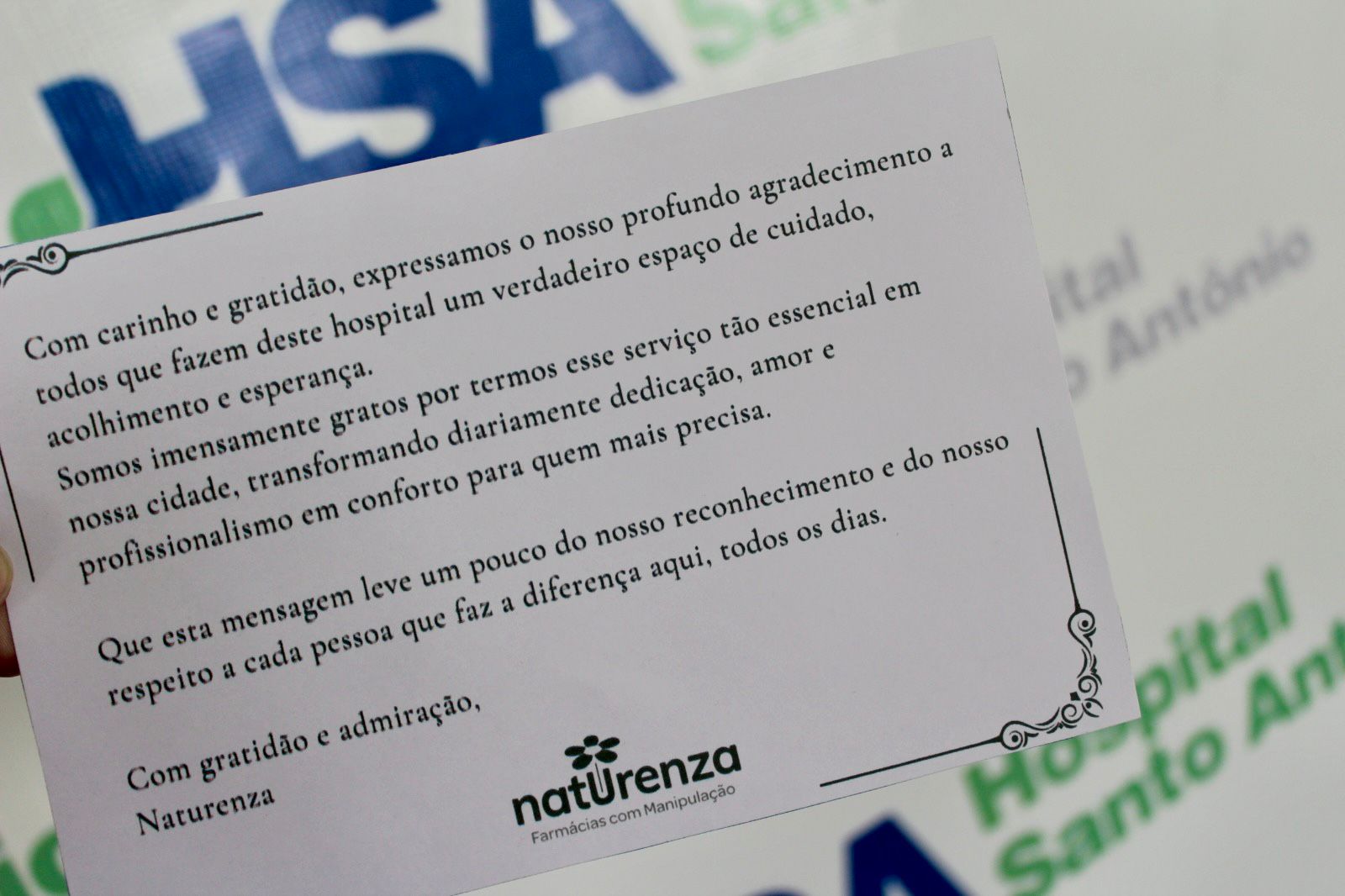 No dia 15 de janeiro, o Hospital Santo Antônio recebeu a doação de kits de higiene da Naturenza Farmácias, gesto que reforça o compromisso com o cuidado, a saúde e o bem-estar dos pacientes da instituição.