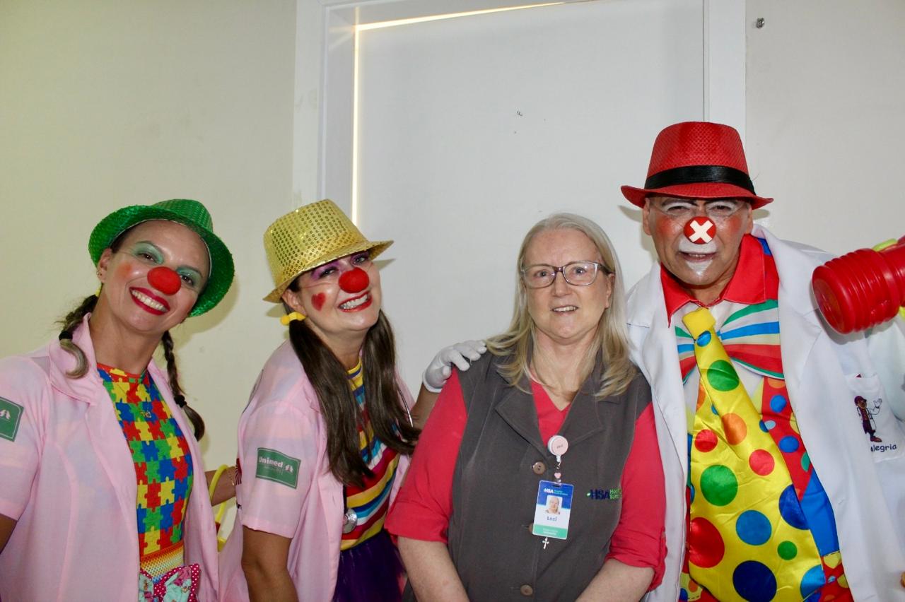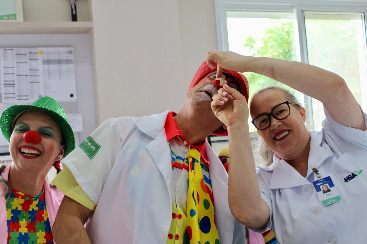 Os Doutores Palhaços percorreram os corredores e setores do HSA, levando alegria, sorrisos e leveza a colaboradores e pacientes. O lema do grupo é: “Rir, para os Doutores Palhaços, é sempre o melhor remédio”, trazendo a importância do bom humor como parte do cuidado e da humanização no ambiente hospitalar.
