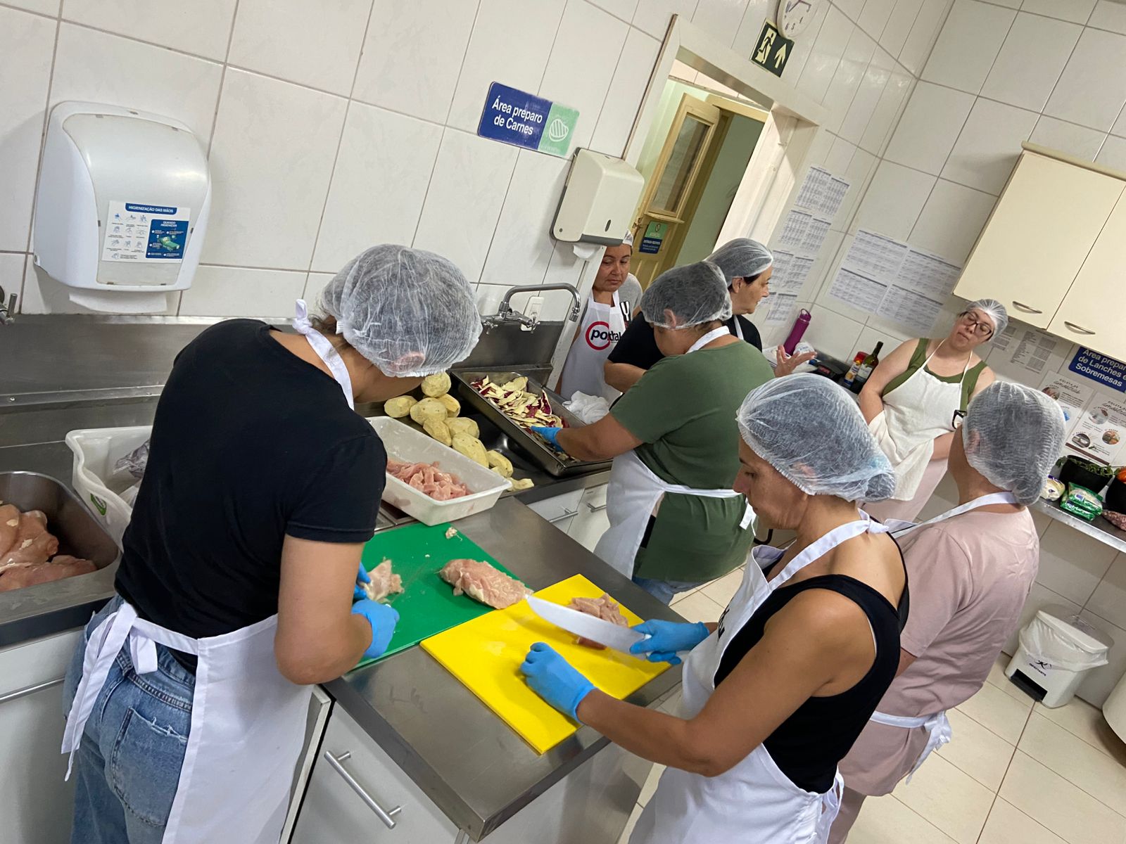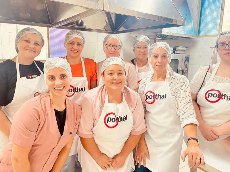 A equipe da cozinha do Hospital Santo Antônio está realizando um curso de gastronomia hospitalar, no qual tem por objetivo abordar técnicas culinárias voltadas à preservação do sabor e do valor nutricional, à padronização das preparações e à apresentação dos pratos, sempre buscando respeitar as dietas especiais e restrições alimentares dos pacientes.