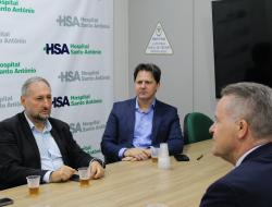 Durante a visita, foram apresentados o cenário atual do hospital, os desafios enfrentados e os projetos em andamento, reforçando o compromisso da instituição com a transparência, a gestão responsável e a busca constante por melhorias na qualidade do atendimento. O Hospital Santo Antônio agradece a visita e a atenção dos representantes do Estado, fortalecendo a parceria e o diálogo em prol da saúde da nossa comunidade.